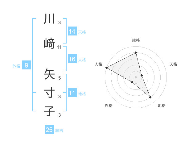 川﨑 矢寸子さんを姓名の画数から五運を鑑定