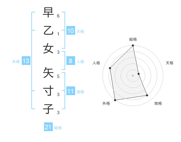 早乙女 矢寸子さんの総格は21画の5点!