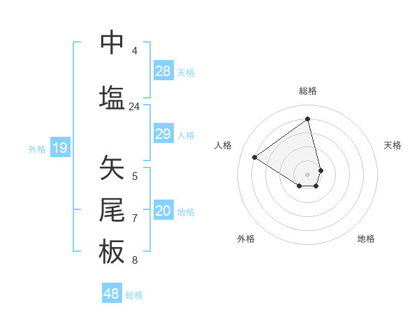 中塩 矢尾板さんを姓名の画数から五運を鑑定