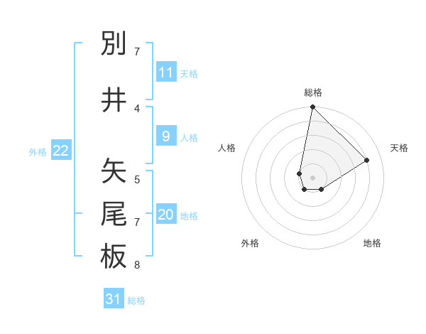 別井 矢尾板さんの総格は31画の5点!