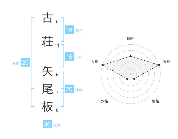 古荘 矢尾板さんの天格は16画の5点!