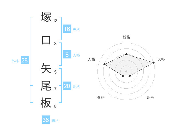 塚口 矢尾板さんを姓名の画数から五運を鑑定