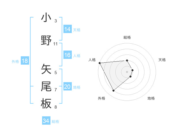 小野 矢尾板さんを姓名の画数から五運を鑑定