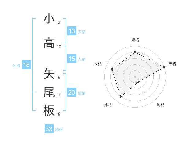 小高 矢尾板さんを姓名の画数から五運を鑑定