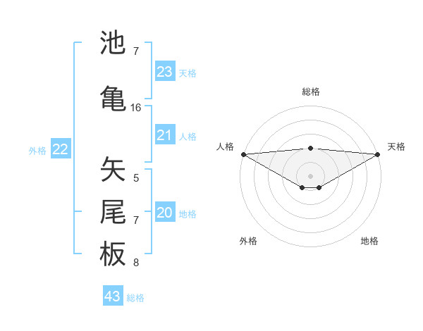 池亀 矢尾板さんの総格は43画の2点!