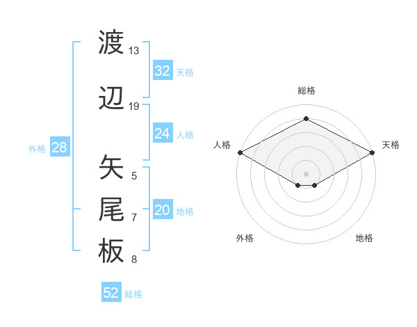 渡辺 矢尾板さんを姓名の画数から五運を鑑定