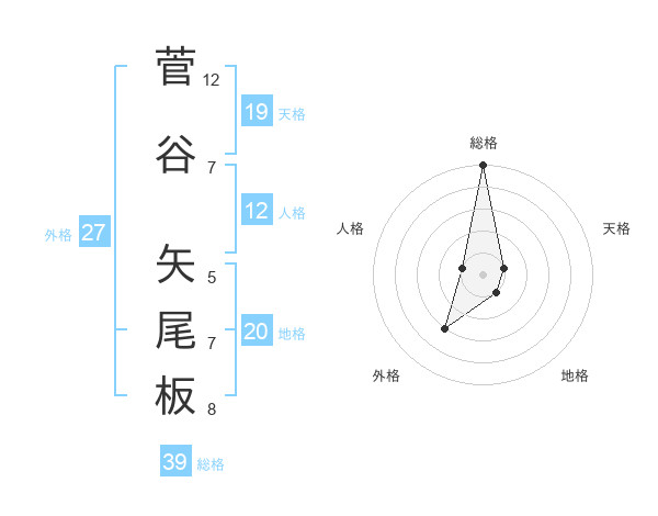 菅谷 矢尾板さんの総格は39画の5点!