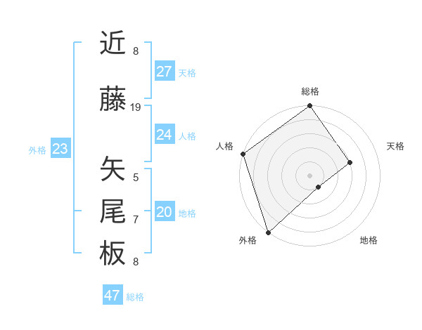 近藤 矢尾板さんの総格は47画の5点