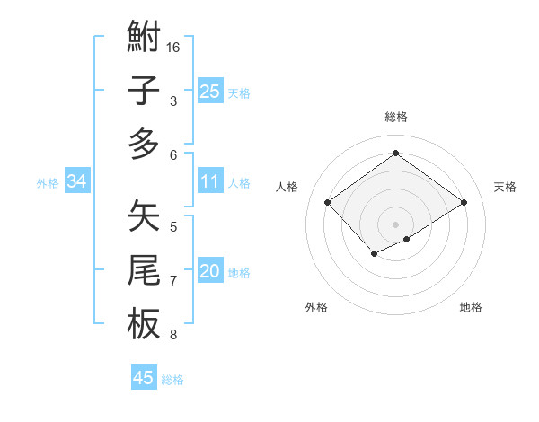 鮒子多 矢尾板さんを姓名の画数から五運を鑑定