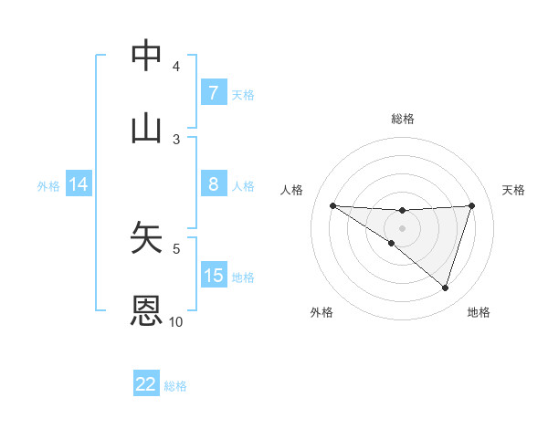 中山 矢恩さんの総格は22画の1点!