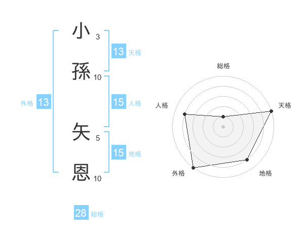小孫 矢恩さんを姓名の画数から五運を鑑定