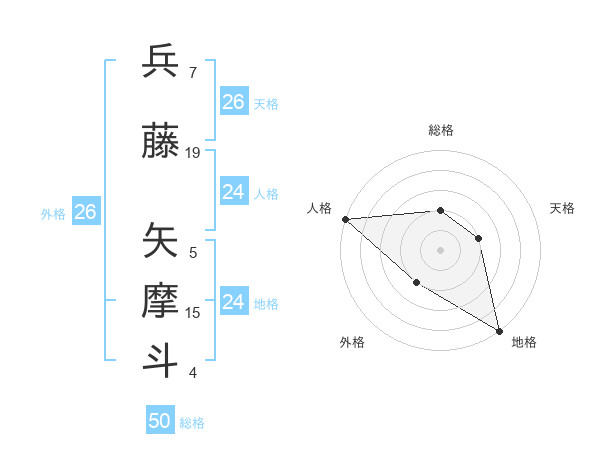 兵藤 矢摩斗さんを姓名の画数から五運を鑑定