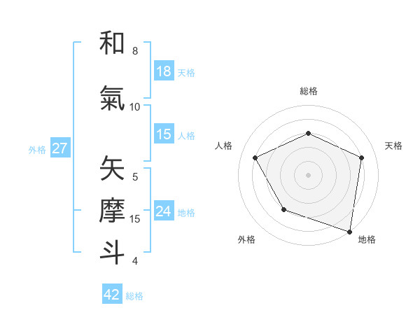 和氣 矢摩斗さんを姓名の画数から五運を鑑定
