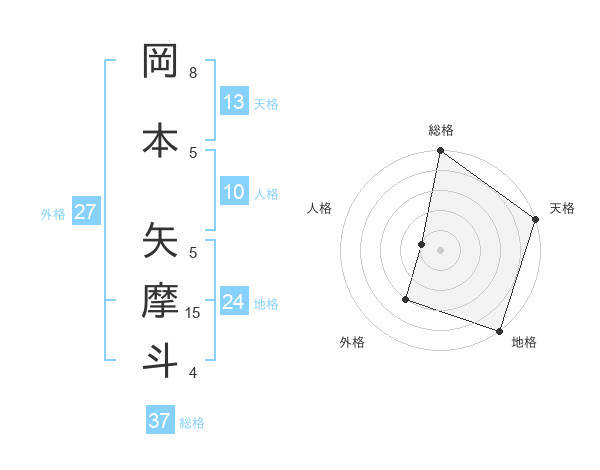岡本 矢摩斗さんを姓名の画数から五運を鑑定