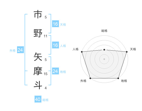 市野 矢摩斗さんを姓名の画数から五運を鑑定