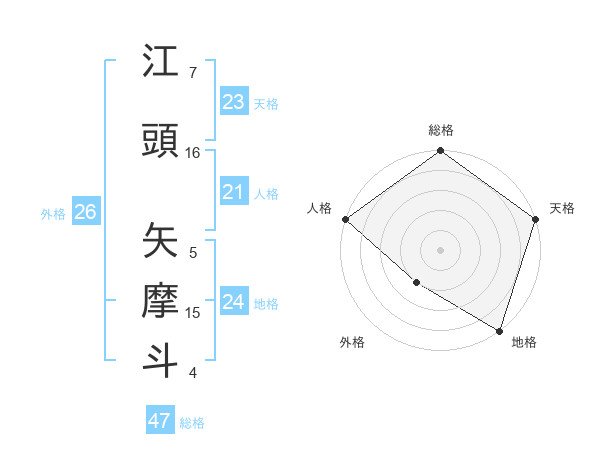 江頭 矢摩斗さんを姓名の画数から五運を鑑定