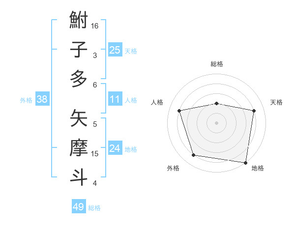鮒子多 矢摩斗さんの外格は38画の4点!