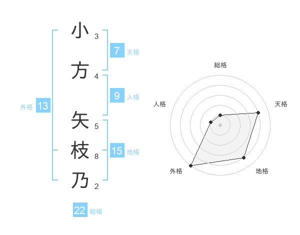 小方 矢枝乃さんを姓名の画数から五運を鑑定