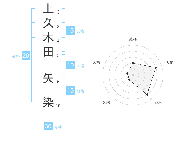 上久木田 矢染さんを姓名の画数から五運を鑑定