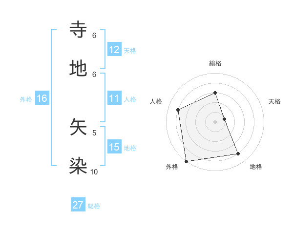 寺地 矢染さんの総格は27画の3点!