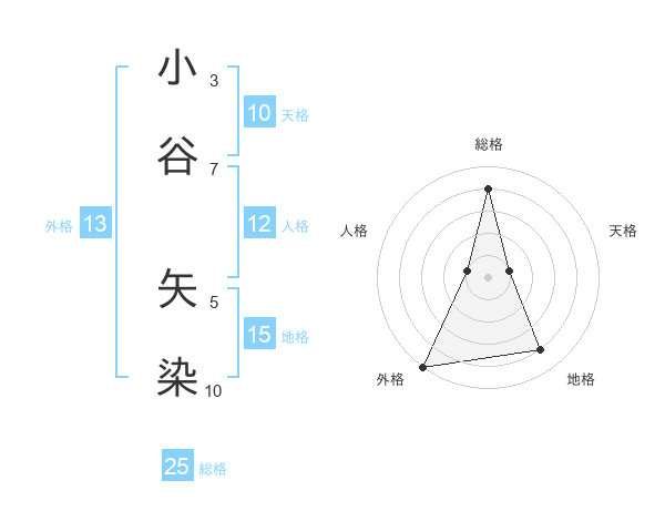 小谷 矢染さんを姓名の画数から五運を鑑定