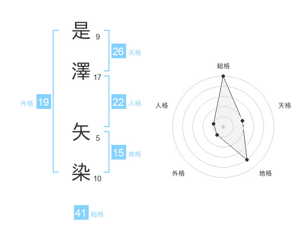 是澤 矢染さんを姓名の画数から五運を鑑定