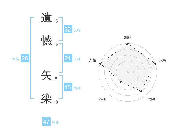 遺憾 矢染さんの地格は15画の4点!