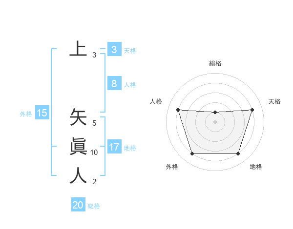 上 矢眞人さんの総格は20画の1点!