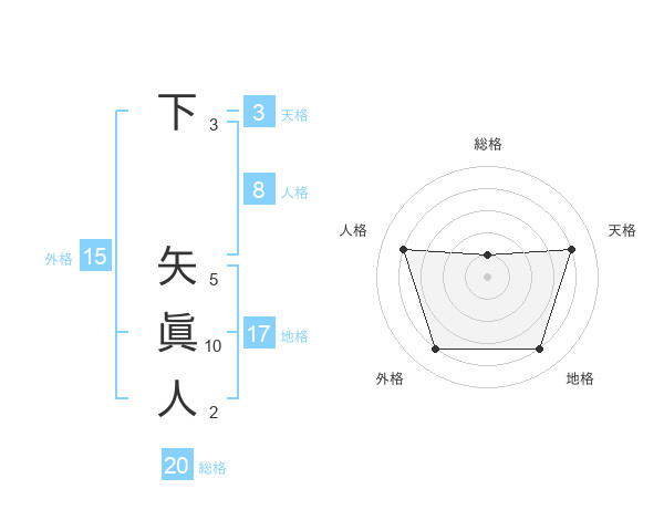 下 矢眞人さんを姓名の画数から五運を鑑定