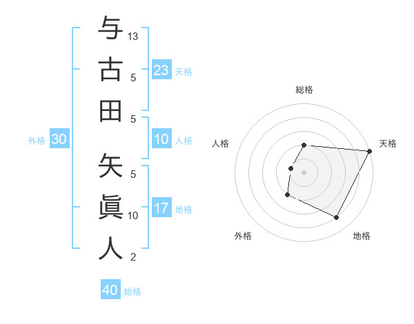 与古田 矢眞人さんを姓名の画数から五運を鑑定