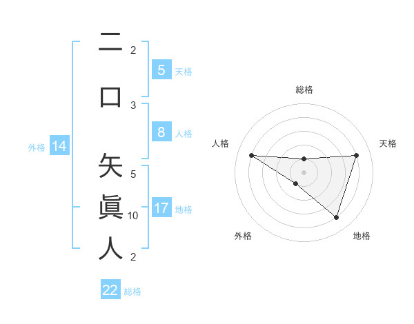 二口 矢眞人さんを姓名の画数から五運を鑑定