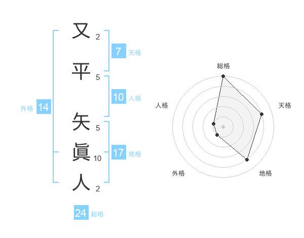 又平 矢眞人さんを姓名の画数から五運を鑑定
