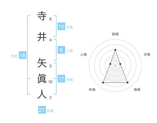 寺井 矢眞人さんの総格は27画の3点!