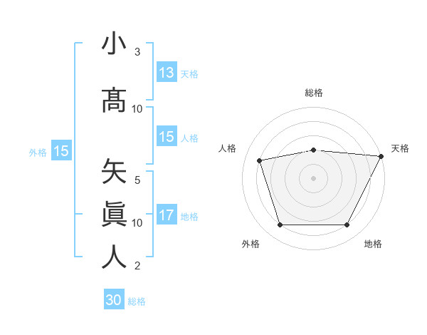 小髙 矢眞人さんの天格は13画の5点!