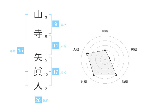 山寺 矢眞人さんの総格は26画の2点!
