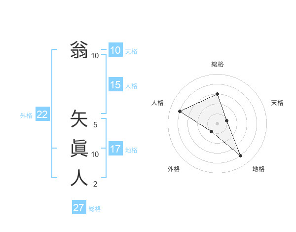 翁 矢眞人さんの外格は22画の1点!