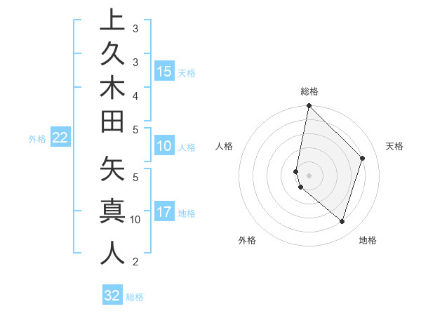 上久木田 矢真人さんを姓名の画数から五運を鑑定
