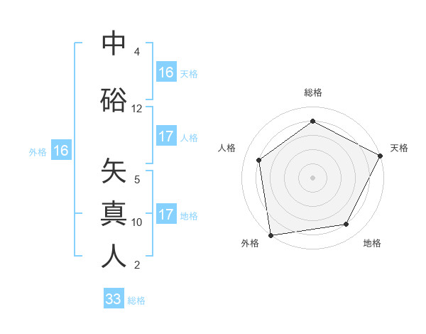 中硲 矢真人さんの外格は16画の5点!