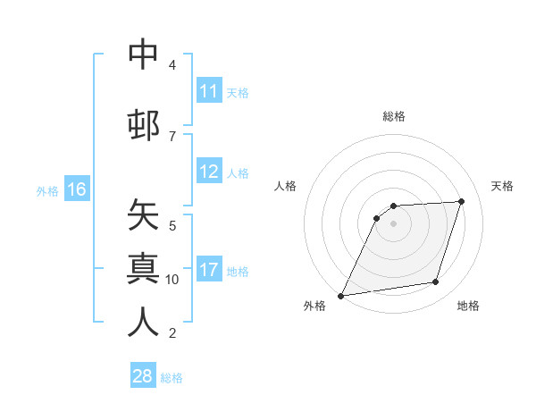 中邨 矢真人さんの地格は17画の4点!