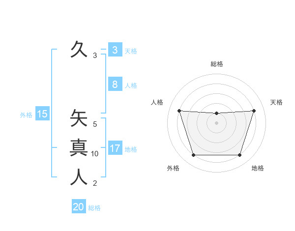 久 矢真人さんの総格は20画の1点!