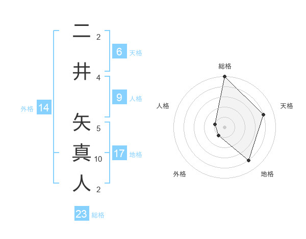 二井 矢真人さんの総格は23画の5点!