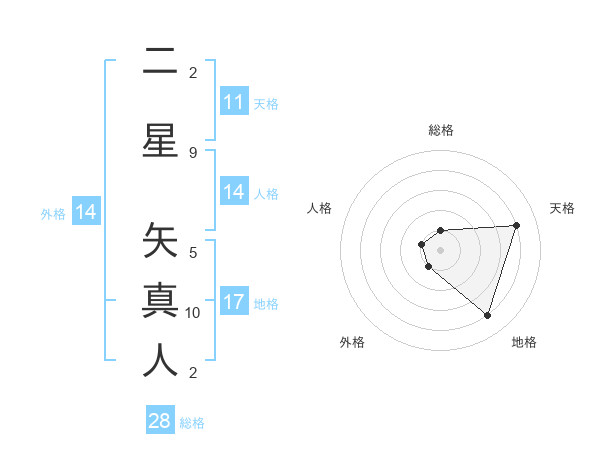 二星 矢真人さんの天格は11画の4点!