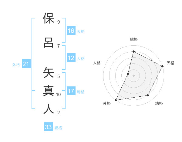 保呂 矢真人さんの外格は21画の5点!