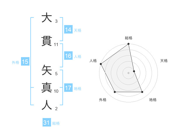 大貫 矢真人さんを姓名の画数から五運を鑑定