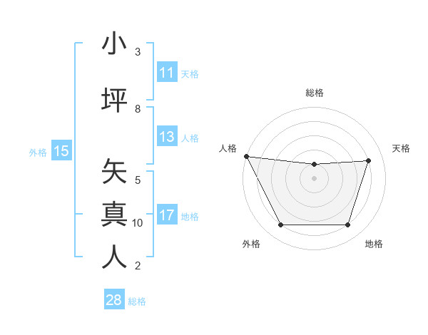 小坪 矢真人さんの総格は28画の1点!