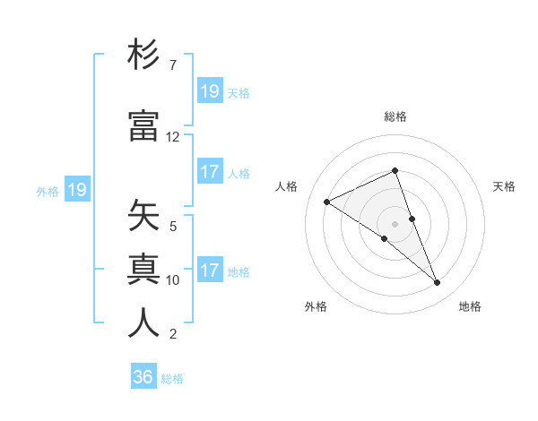 杉富 矢真人さんの地格は17画の4点!