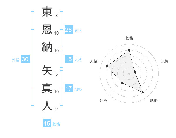 東恩納 矢真人さんを姓名の画数から五運を鑑定