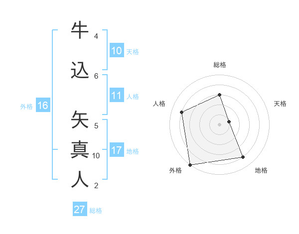 牛込 矢真人さんを姓名の画数から五運を鑑定