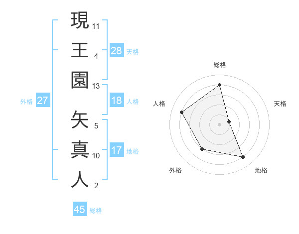 現王園 矢真人さんを姓名の画数から五運を鑑定