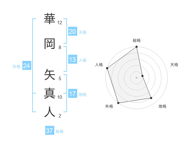 華岡 矢真人さんの総格は37画の5点!